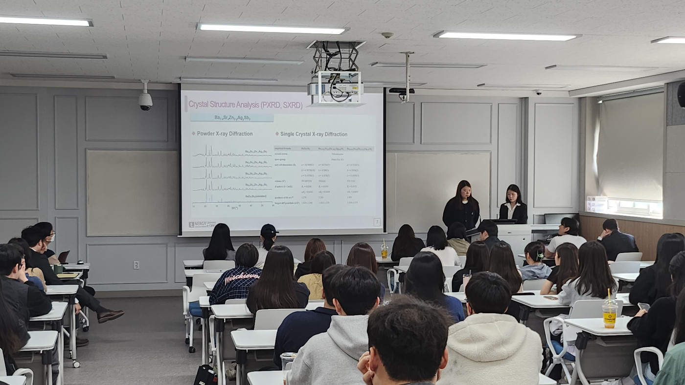 '열 에너지를 전기 에너지로 전환하는 신규 열전물질에 대한연구'를 주제로 성공적으로 발표를 마쳤습니다.