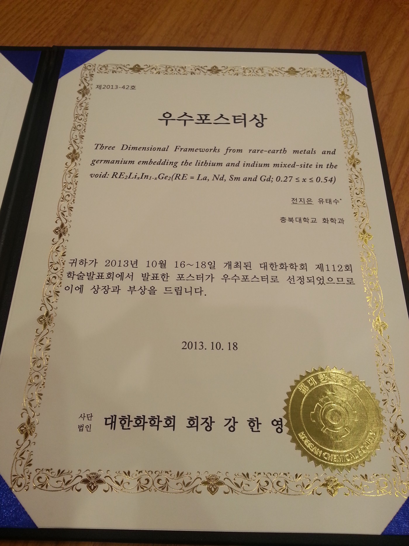 2013년도 KCS 추계 학술대회 참가 및 수상 (전지은학생)